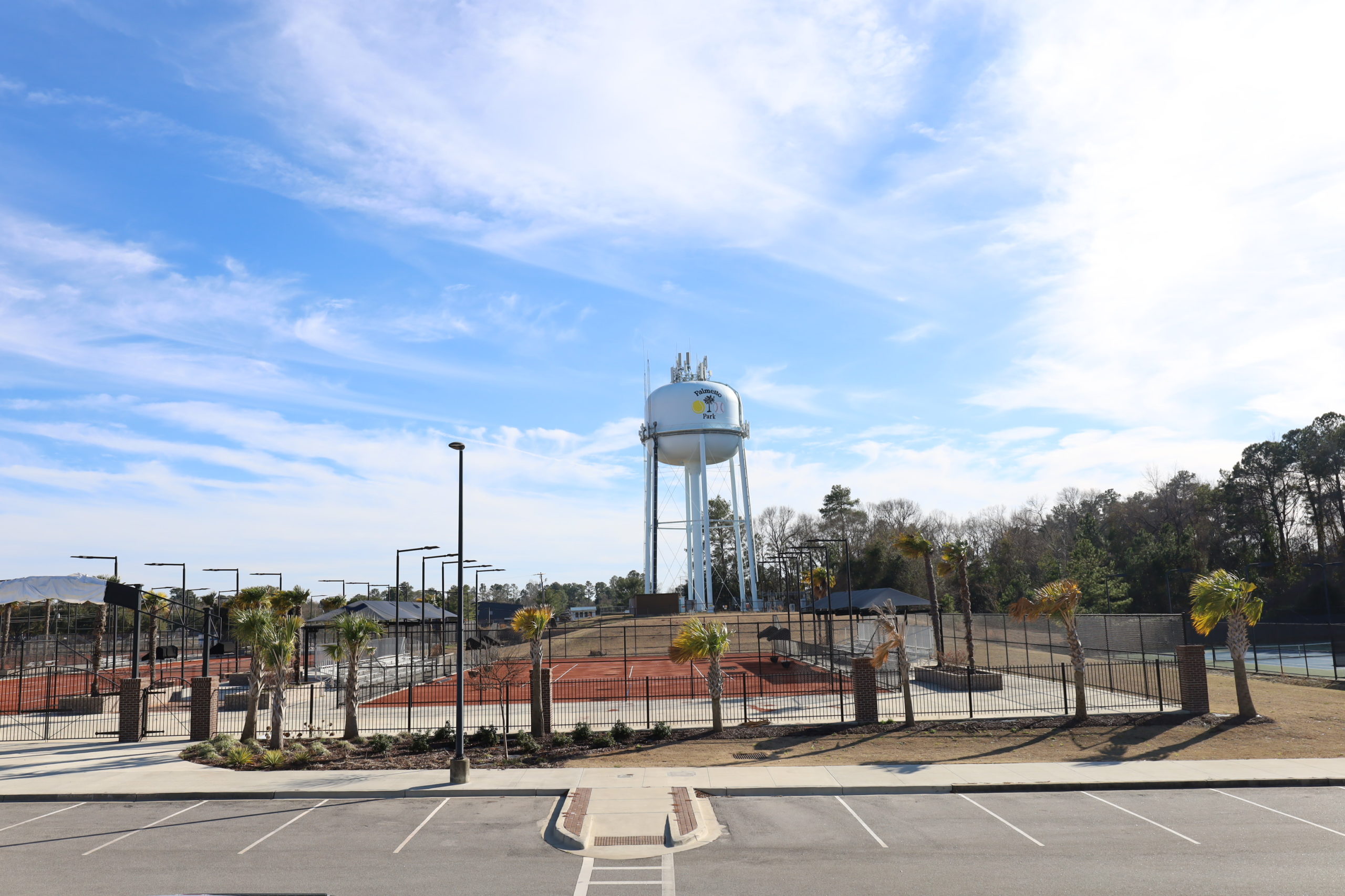 The City of Sumter hired Davis & Floyd to evaluate and redesign a multi-court tennis complex to create a unique regional tennis center with a new pro shop, large red clay stadium court, and seven additional red clay courts. Our design work included brick paver plazas for events and social gatherings that contained fountains, raised seat planters, arbors with swings, landscaping, irrigation, landscape lighting, and decorative brick columns with wrought-iron fencing and gates.